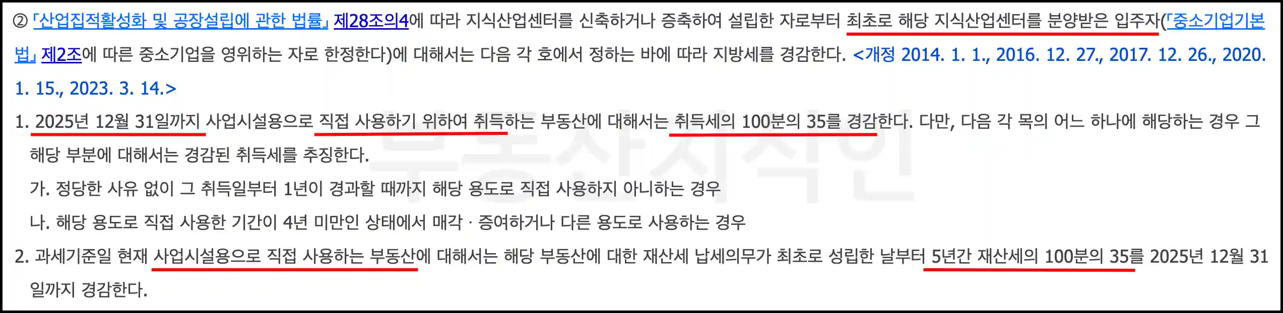 - 취득세 35% 감면, 재산세 35% 감면(5년간).(지방세특례제한법 제58조의2)