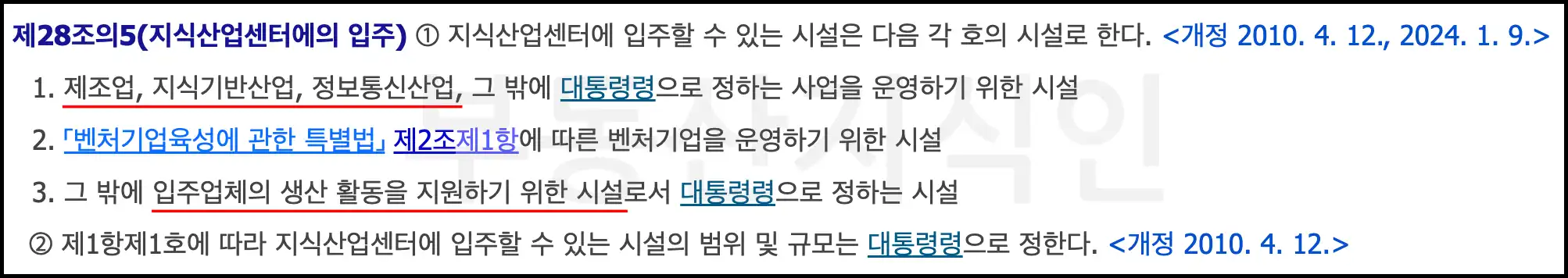 산업집적법 제28조의5 규정에 따라 지식산업센터에 입주 가능한 업종은 크게 “제조업, 지식산업, 정보통신산업”으로 나뉩니다. (이 글에서는 대략적으로만 알아보고 다음 포스팅에서 자세히 알려드릴게요!)